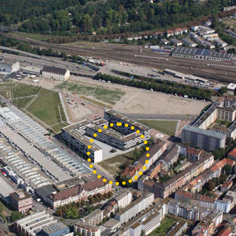 Auf dem ehemaligen Areal des Güterbahnhofs entsteht das neue Wohnquartier Erlenmatt nach dem städtebaulichen Konzept von Ernst Niklaus Fausch Architekten. Fünf Baufelder, sogenannte Schollen, verzahnen sich über die Aussenräume mit dem übrigen Stadtgebiet. Die neue Bebauung integriert sich in das Gefüge der Stadt und profitiert vom grosszügigen inneren Grünraum.