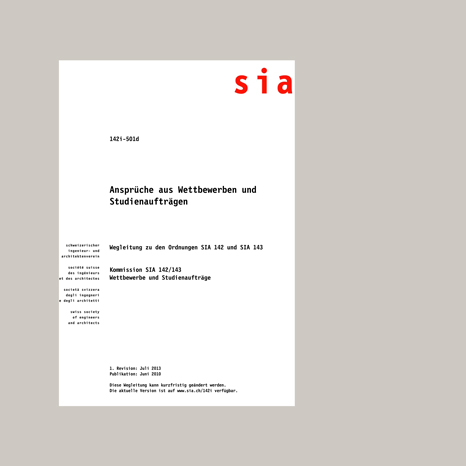 Bereits 1877 hat der SIA mit der Publikation «Öffentliche Concurrenzen» zehn Regeln zur Durchführung von Wettbewerben veröffentlicht. Im Lauf der 135-jährigen Geschichte wurde daraus ein breit anerkanntes Regelwerk. Die beiden Ordnungen SIA 142 für Wettbewerbe und SIA 143 für Studienaufträge schliessen die Lücken in der Gesetzgebung des öffentlichen Beschaffungswesens und bieten so den Auslobern grosse Rechtssicherheit. Damit SIA-konforme Programme für Wettbewerbe oder Studienaufträge künftig auf einen Blick erkennbar sind, werden sie neu mit einem entsprechenden Signet auf der Titelseite gekennzeichnet.