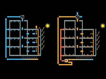Neue Technologien, wie beispielsweise die Komfort-Lüftung bewirken nicht nur eine Veränderung der technischen Installationen, sondern wirken sich ganz direkt auf die Typologie des Gebauten aus. Sie bestimmen nicht nur die Konstruktion, sondern auch den architektonischen Ausdruck eines Gebäudes.